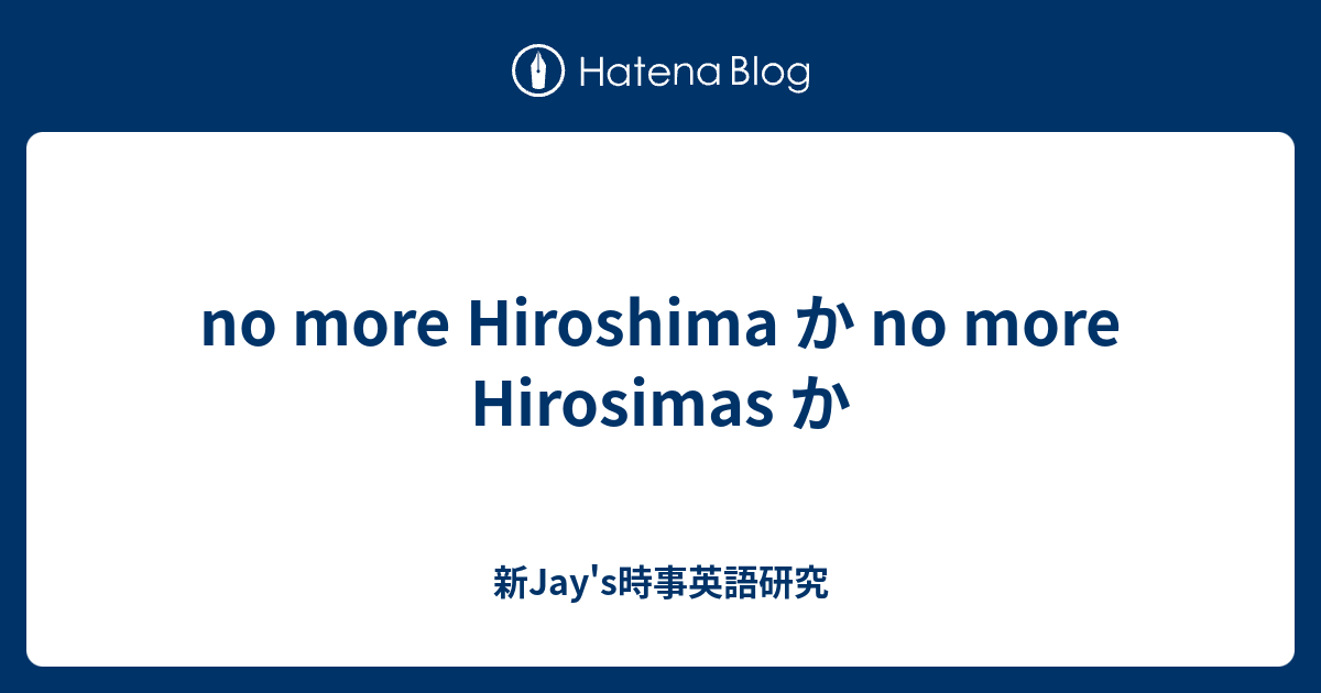 No More Hiroshima か No More Hirosimas か 新jay S時事英語研究